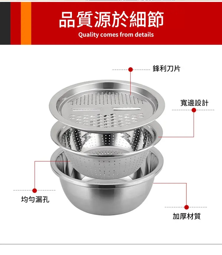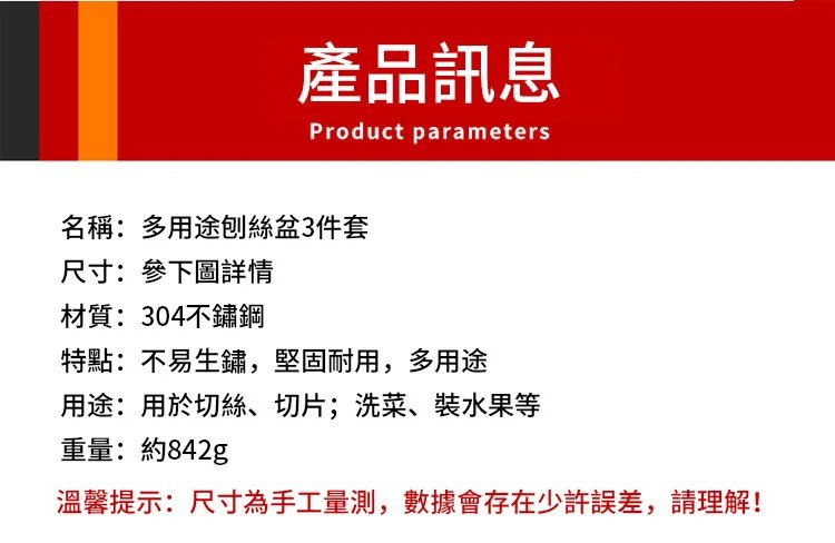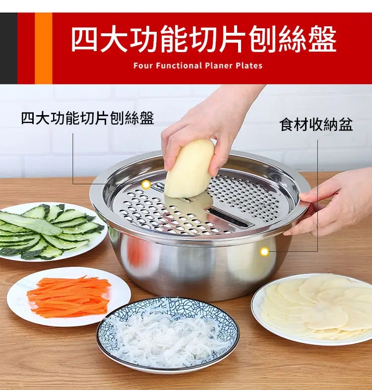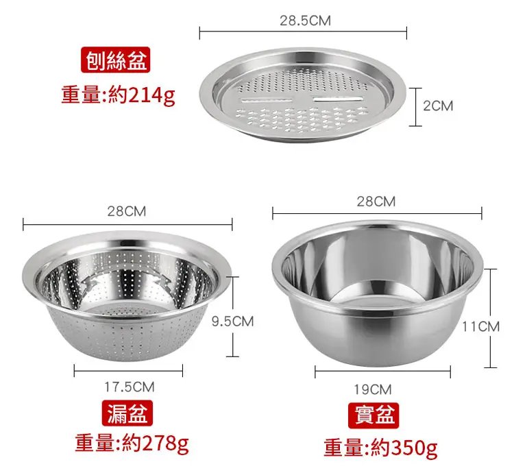 304不銹鋼刨絲盆三件套